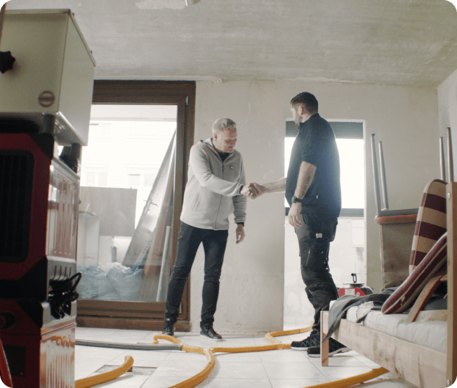 Wenn du eine Ausbildung im Bauhandwerk abgeschlossen hast, können wir dich zum Trocknungstechniker weiterbilden. In enger Abstimmung mit unserer Projektleitung bist du für den fachmännischen Auf- und Abbau der Trocknungsgeräte vor Ort bei Kunden zuständig. Du führst selbständig Feuchtigkeitsmessungen durch und wirkst in der Schadenaufnahme- und Dokumentation mit. Auch kleinere handwerkliche Arbeiten im Zuge der Sanierung fallen in deinen Zuständigkeitsbereich.